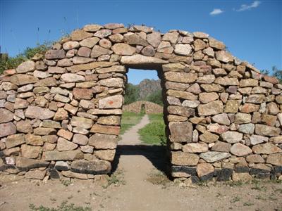 Nach dem Essen holen wir unsere deponierten Sachen aus dem Hotel und stornieren die Reservation fuer den folgenden Abend. Unsere Fahrt Richtung SALTA fuehrt uns zuenachst nach LONDRES, wo angeblich ein 'Baumnussfest' stattfinden soll. Die Einheimischen scheinen nicht viel davon zu wissen, der Banner beim Dorfeingang liefert dann die gesuchte Antwort; falsches Datum heute.. Ein Alternativ-Programm ist schnell gefunden; einige 100m weiterhin warten die Inka-Ruinen 'EL SHINCAL' auf unseren Besuch. Endlich mal wieder etwas Kultur, zwar auch wieder Steine, doch etwas huebscher angeordnet.