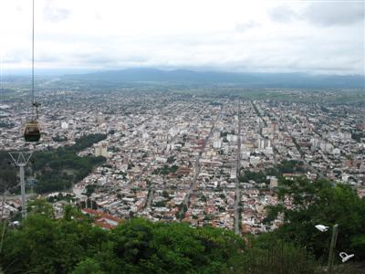 Vor der Weiterreise bleiben uns noch 2 Stunden in SALTA. Wir sind schon ernsthaft bereit aus Zeitgruenden die Bahn auf den CERRO SAN BERNARDINO zu nehmen. Kurzfristig entscheiden wir uns doch fuers spazieren, haben ja schliesslich schon lange nichts mehr geleistet. Auf den Berg sind es gut 1070 Treppenstufen. Runter nehmen wir dann die schweizerische CARAVENTA-Bahn, um den Kulturschock fuer die Heimreise zu minimieren. Wir erwischen so auch den Bus weiter nach JUJUY.