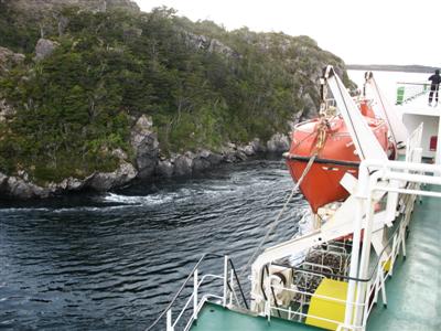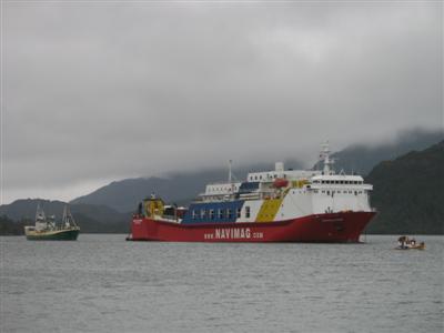 Die letzte Nacht in PUERTO NATALES verbrachten wir im Hafen auf dem Schiff. Planmaessig um 06:00 Uhr am naechsten Morgen verliessen wir den sicheren Hafen und machten uns auf den Weg nach PUERTO MONTT zwischen einem Labyrinth aus Meerengen und Fjorden.