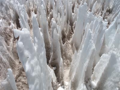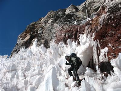 Aufstieg durch ein kleines Penitentes-Feld