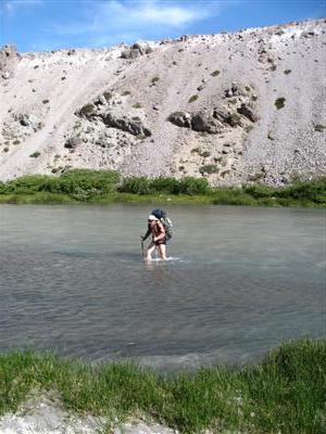 Dann bog der Weg ab und stieg immer steiler in die Hoehe, auf dem Weg zu unserem BC. Dazwischen versperrte uns ein frischer Fluss den Weg, den es zu durchqueren galt.