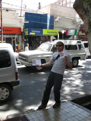 Wir erreichen PLAZA DE MULAS und entscheiden uns sogleich fuers Weiterziehen. Ich verzichte nicht nur auf ein Bier sondern auch auf die Cola, was ja eigentlich medizinisch den nach wie vor drueckenden Umstaenden entsprechend total vertretbar gewesen waere. Wenigstens duerfen wir endlich unseren Kack-Bag abliefern.