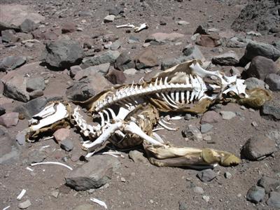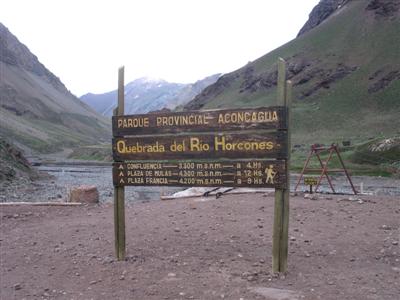 In HORCONES auf etwa 2900m duerfen wir auch unseren Abfall deponieren und endlich auschecken. Nebenan landet ein Helikopter, ein Krankenwagen wartet bereits. Wir nehmen definitiv Abschied und machen uns an die letzten paar Hoehenmeter bis nach PUENTE DEL INCA 2700m, wo wir auf einen Camping oder noch besser auf ein gediegenes Hostel hoffen.