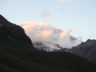 Der CERRO ACONCAGUA blinzelt uns ab und zu noch durch die Wolkendecke zu, bevor er ganz aus dem Blickfeld entschwindet.