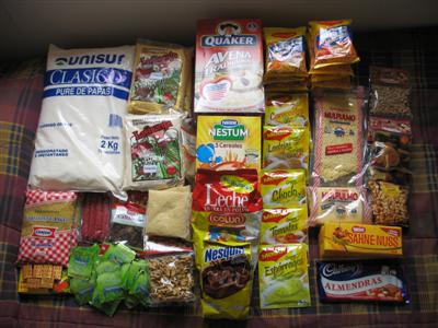 Fuer unseren ersten Trip in den TORRE DEL PAINE Nationalpark haben wir uns mit Essen fuer etwa 10 Tage eingedeckt, das sind etwa 8kg pro Person. Das beste was wir ergatterten ist ein 2kg Sack Kartoffelflocken. Mit diesem STOCKI-Ersatz laesst sich allfaelliges Heimweh im Keime ersticken!
